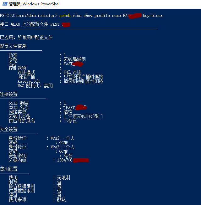 win10 查看已连接wifi的密码 2021年10月3日 0条评论 7次阅读 0人点赞 venski 总有时候忘了wifi密码,你可以用以下命令本看。 netsh wlan show profile name=wifi名称 key=clear 如图,关键内容部分 < 上一篇 下一篇 > 发表评论 取消回复电子邮件地址不会被公开。必填项已用 * 标注* * *